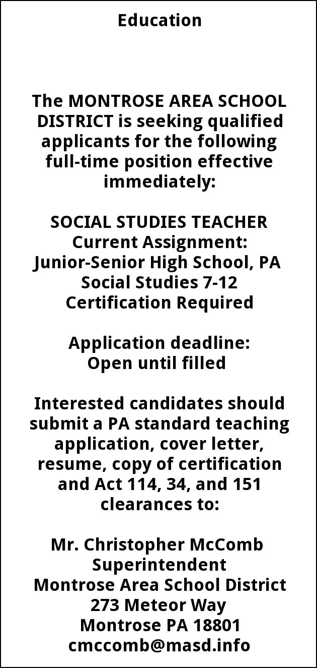 Montrose Area School District Education Jobs from Scranton Times